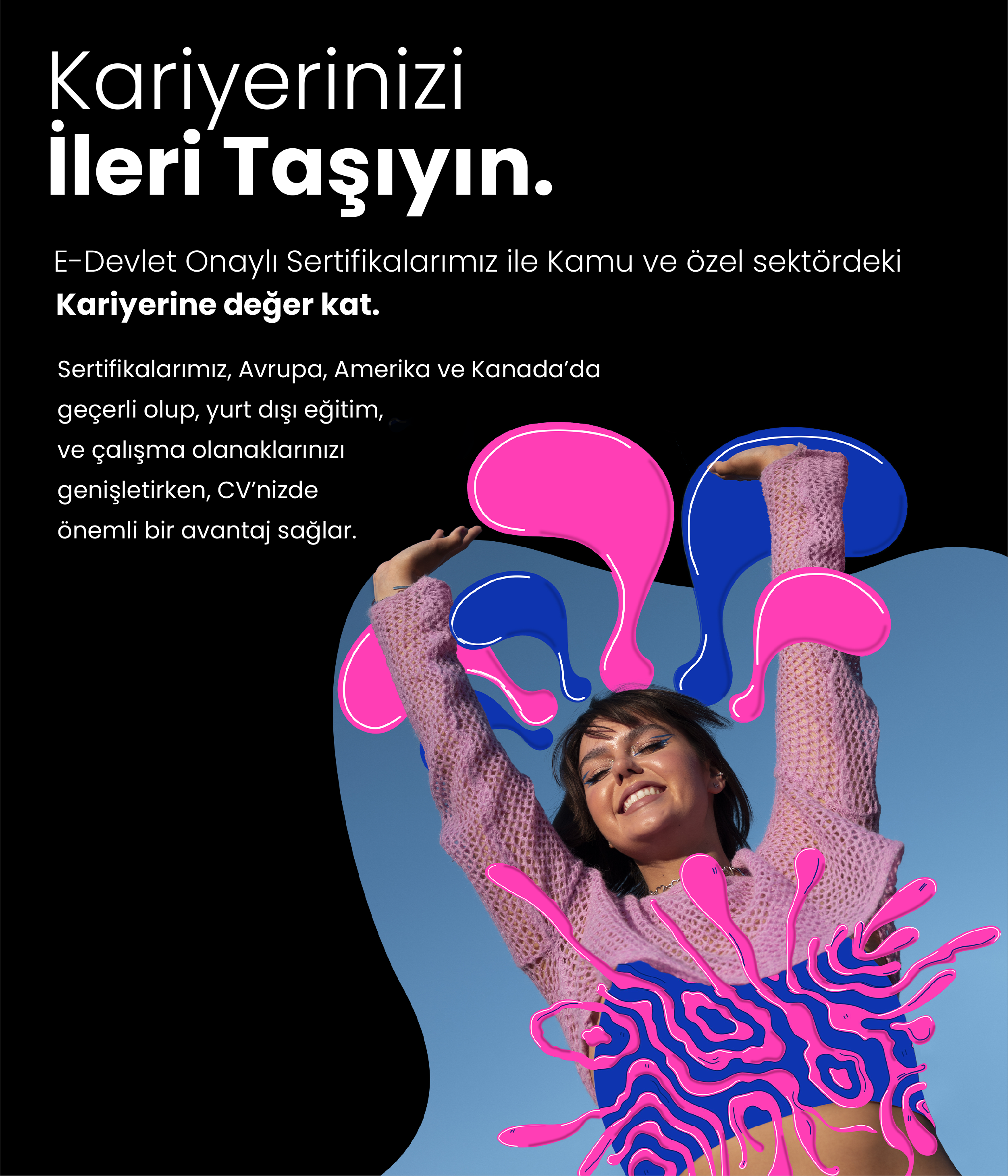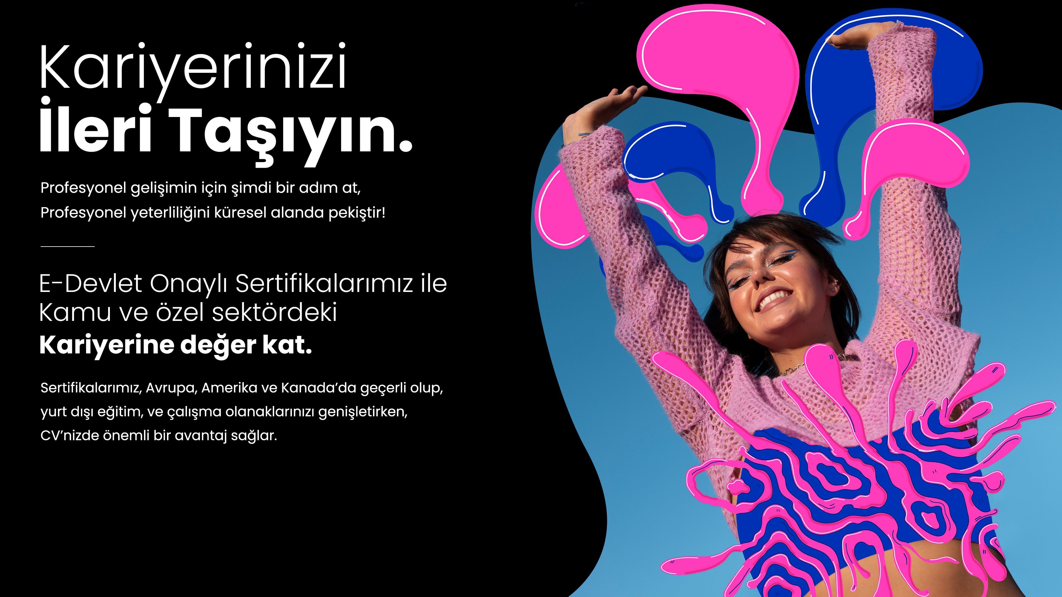 Eğitim süresi boyunca ilk adımından başlayıp son adımına dek nasıl bir yol izlediklerini öğreneceğiniz tüm programlarda hayalinizdeki başarıyı elde edecek sanatınıza veya girişiminize yeni bir bakış açısı kazandıracak ve daha iyi bir pozisyon ile iyi bir başlangıç yapacaksınız ,ve Eğitim sonunda alacağınız sertifikalar ömür boyu sizi mutlu etmeye ve kariyerinizde başarıların için imza atmaya yetecektir.