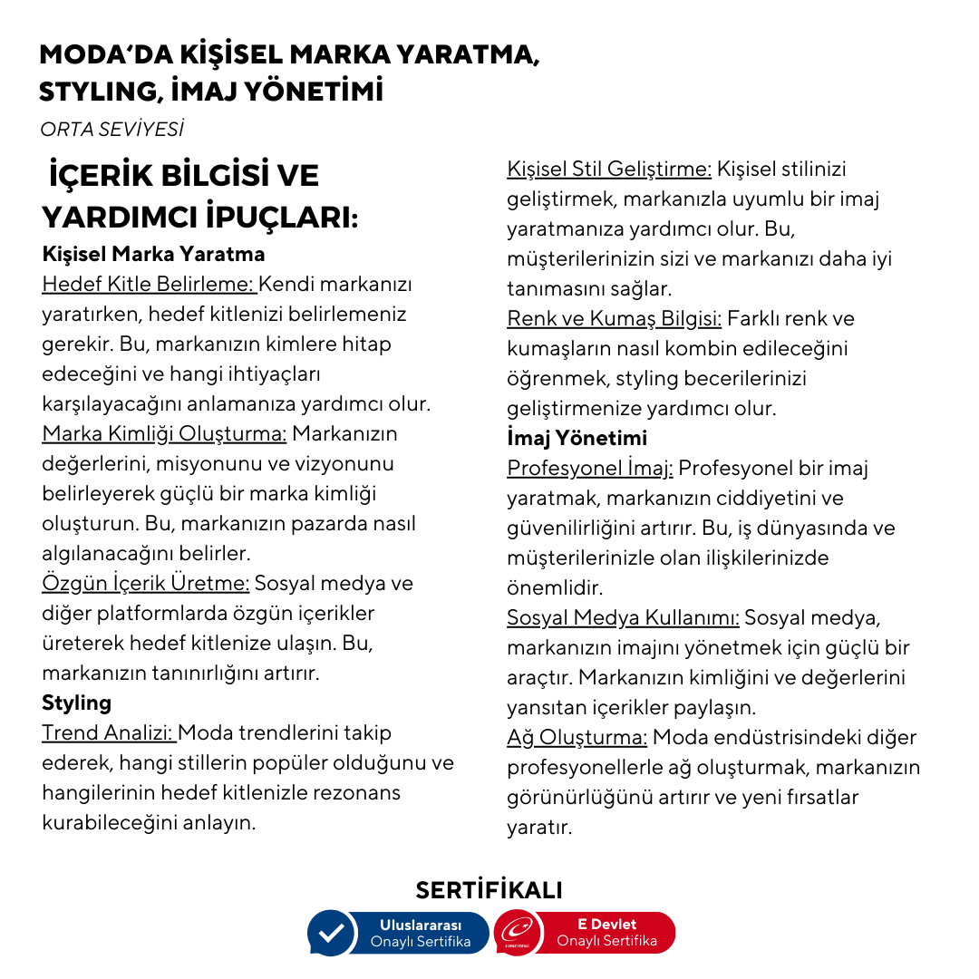 Moda'da Kişisel Marka Yaratma,Styling, İmaj Yönetimi -Orta Seviye