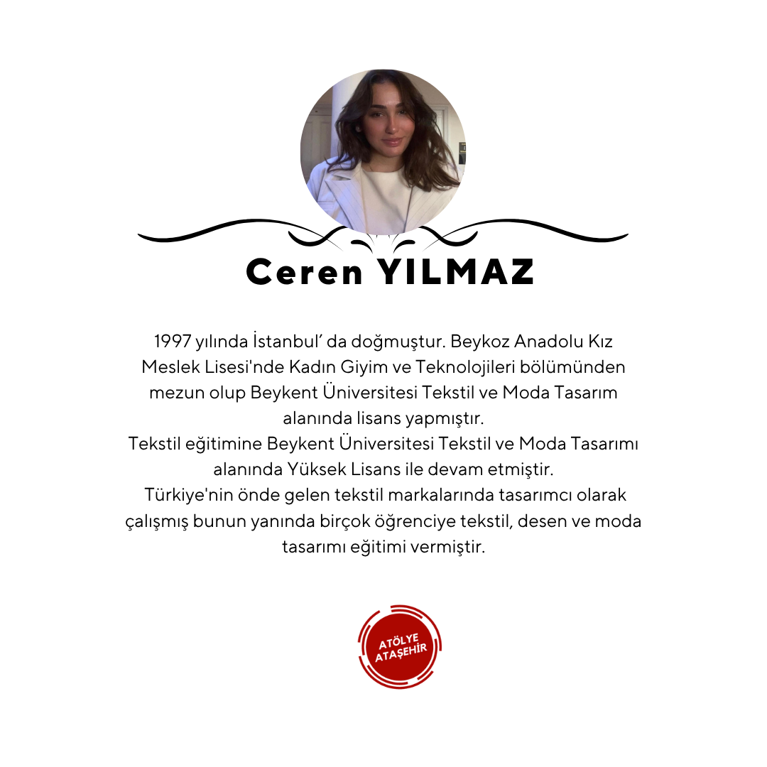1997 yılında istanbul’ da doğmuştur. Beykoz Anadolu kız meslek lisesinde kadın giyim ve teknolojilerin den mezun olup Beykent üniversitesi Tekstil ve Moda Tasarım alanında lisans yapmıştır. Tekstil eğitimine Beykent üniversitesi Tekstil ve Moda Tasarımı alanında Yüksek Lisans ile devam etmiştir. Türkiyenin önde gelen tekstil markalarında tasarımcı olarak çalışmış bunun yanında birçok öğrenciye tekstil,desen ve moda tasarımı eğitimi vermiştir.