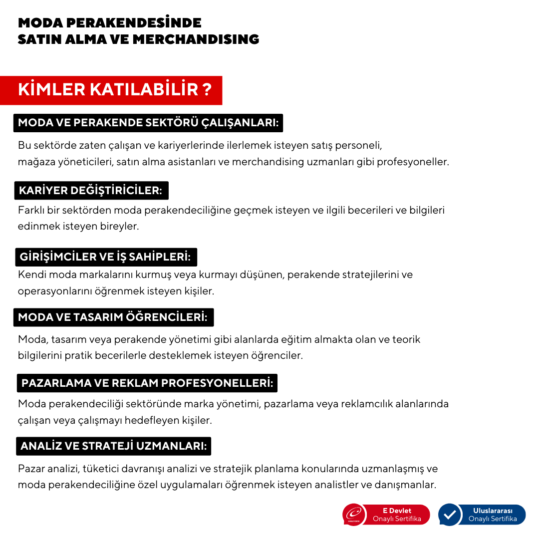 Farklı bir sektörden moda perakendeciliğine geçmek isteyen ve ilgili becerileri ve bilgileri edinmek isteyen bireyler.
