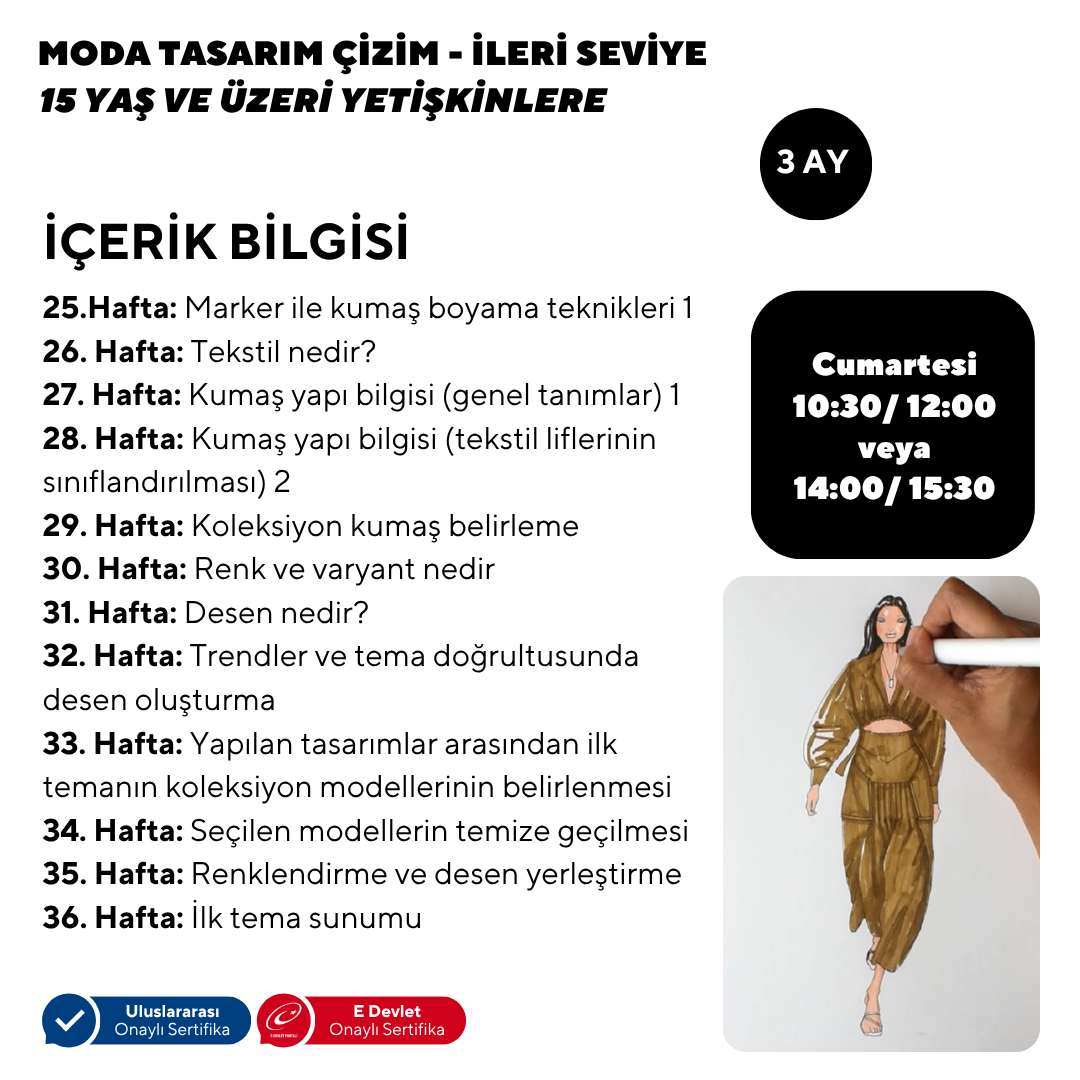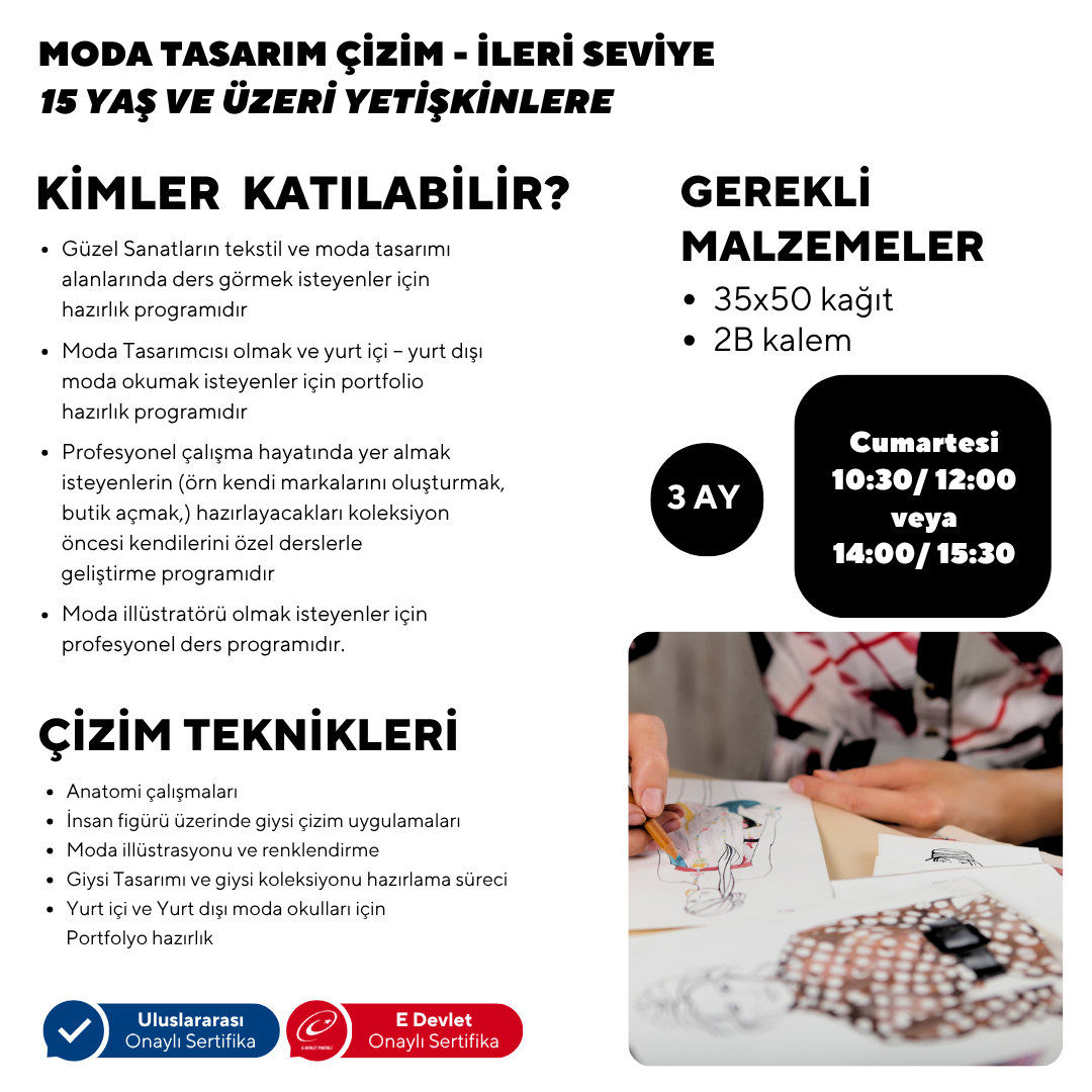 - Moda illüstratörü olmak isteyenler için profesyonel eğitim programıdır.