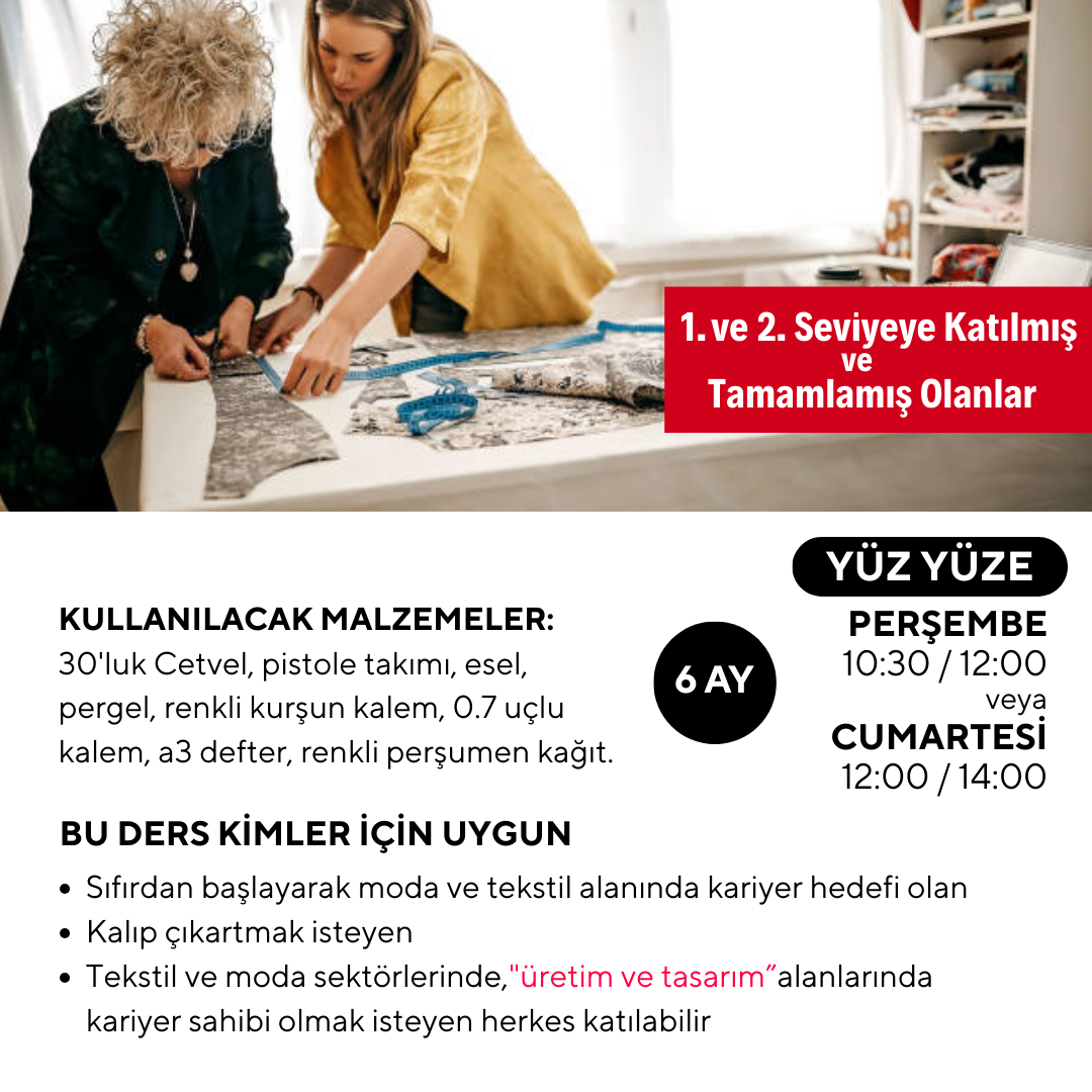 Sıfırdan başlayarak moda ve tekstil alanında kariyer hedefi olan, kalıp çıkartmak isteyen. Tekstil ve moda sektörlerinde, "üretim ve tasarım” alanlarında kariyer sahibi olmak isteyen herkes katılabilir.