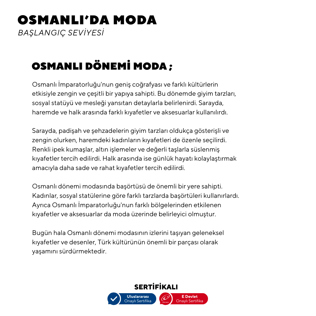 OSMANLI’DA MODA -BAŞLANGIÇ SEVİYESİ